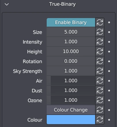 True-Binary represents the secondary star in the TrueSKY system. It offers options that are not typically found in other sky simulation tools. Enabling the Binary option allows you to simulate a second sun or sister star in a solar system.