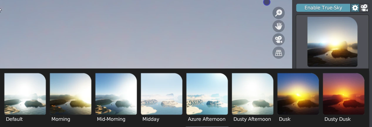 Presets provide pre-built sky setups to simplify the initial setup process. These pre-set skies can be used when you need to quickly set up a specific sky type.